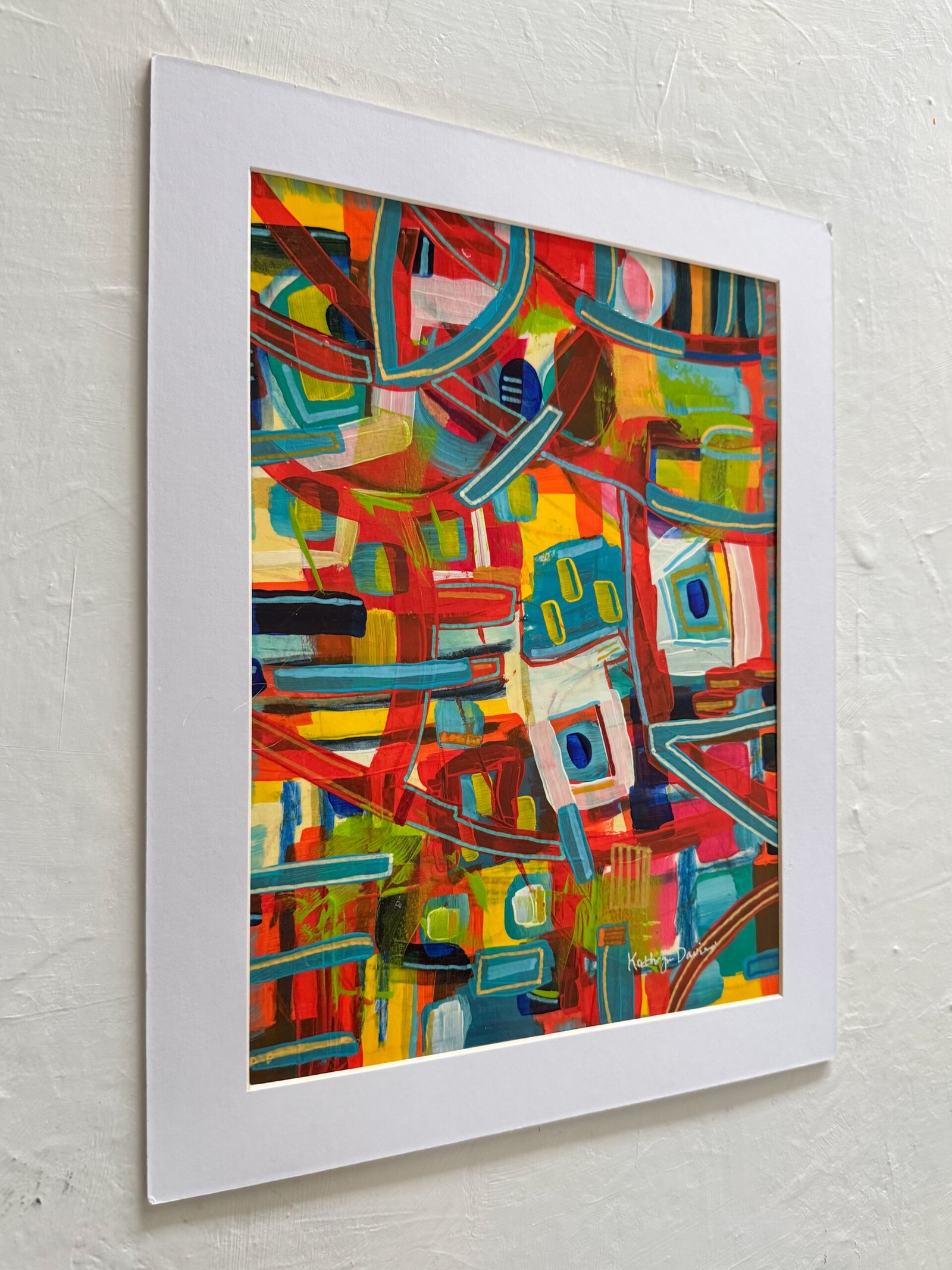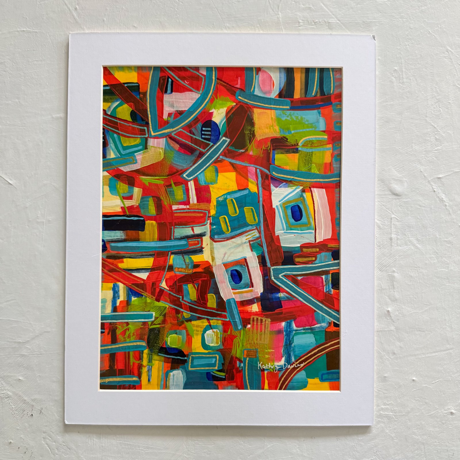 This artwork on paper comes in a 14 x 11 inch white mat with backing board. This piece is titled and signed on the front and back.